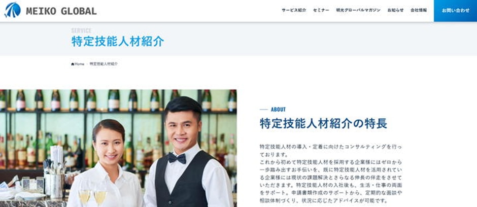 中国、ベトナム、インドネシア、カンボジア、ミャンマーなど | 要問合せ | 独自の手法で獲得した5,000名以上の人材情報を保有しており、優秀な人材とスピーディーにマッチングできる 履歴書・一次面接によってスクリーニングをかけた外国人のみを紹介 | |