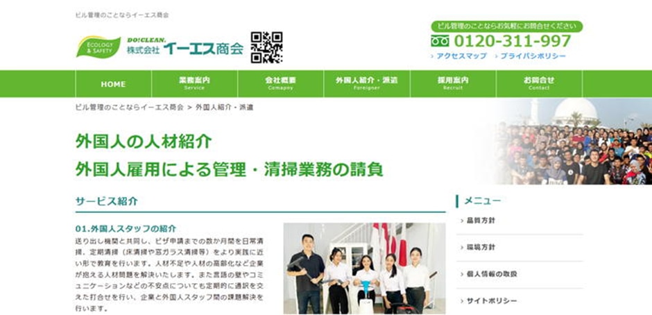 ベトナム、ミャンマー、インドネシア、カンボジア、中国、台湾、ネパール、その他英語圏 | 要問合せ | 約25年にわたって外国人人材を紹介してきた実績があり、ビルクリーニング業分野への紹介実績も豊富 マニュアルなどの翻訳もサポートしているため、はじめて外国人を受け入れる企業でも安心 | |