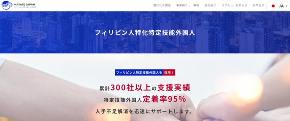 フィリピン人を育成・紹介した実績も豊富で、文化・国民性はもちろん、その人材ならではの特性も見極めたうえでマッチングをサポートしてくれる点が強みといえるでしょう。