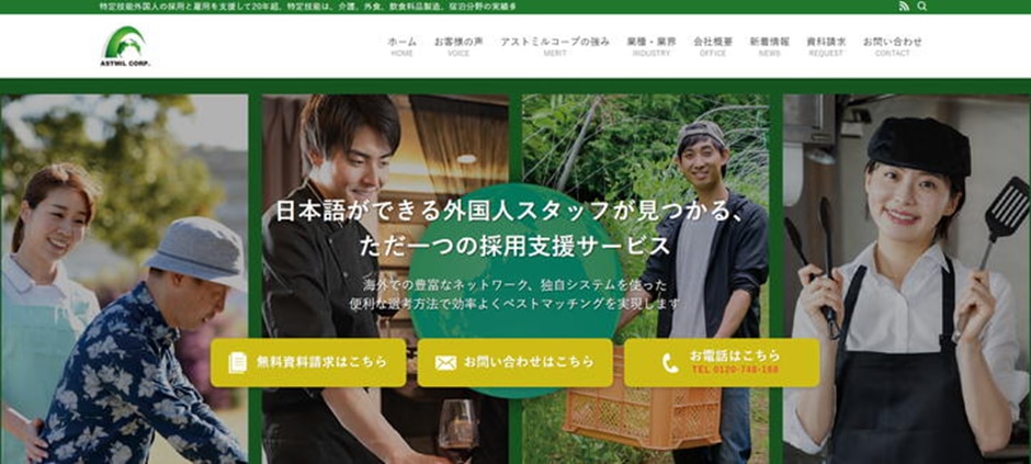 株式会社アストミルコープは、介護・農業・宿泊・外食・食品製造分野に特定技能人材を紹介している採用支援会社です。