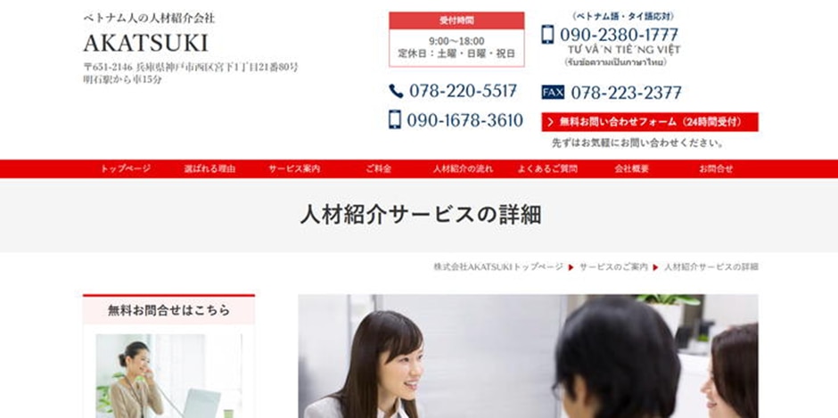 要問合せ | 日本語を扱えるベトナム人スタッフが在籍しており、コミュニケーションをサポートしてくれる | 〇 | 成功報酬型(初期費用なし) |