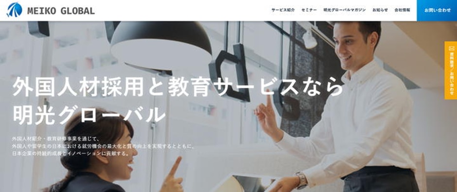 株式会社明光キャリアパートナーズは、特定技能人材の紹介、外国人人材の定着コンサルティングを得意とする採用支援会社です。