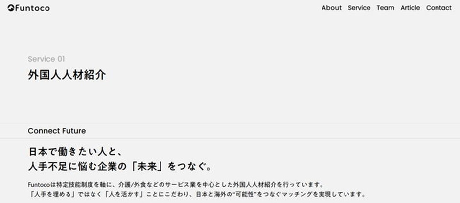 株式会社Funtocoは、特定技能制度を軸に、介護・外食などのサービス業へ外国人人材を紹介している会社です。