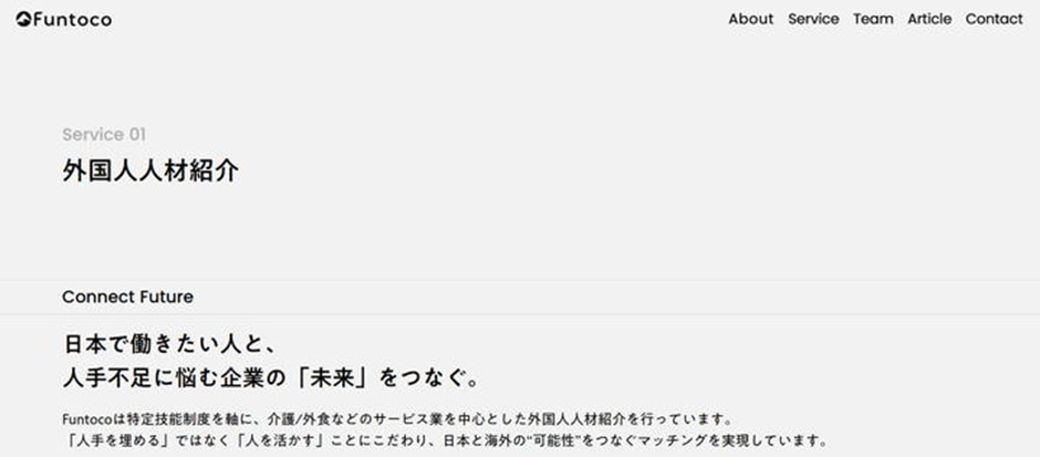 株式会社Funtocoは、介護・外食などのサービス業向けに外国人人材を紹介している会社です。