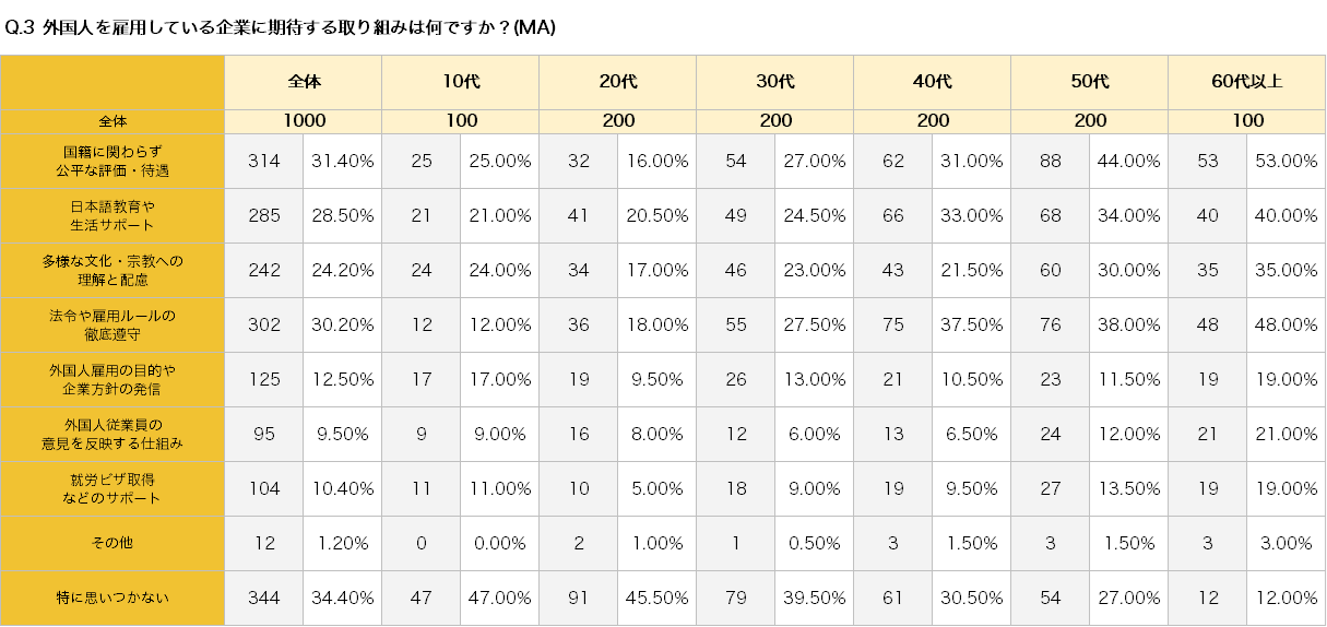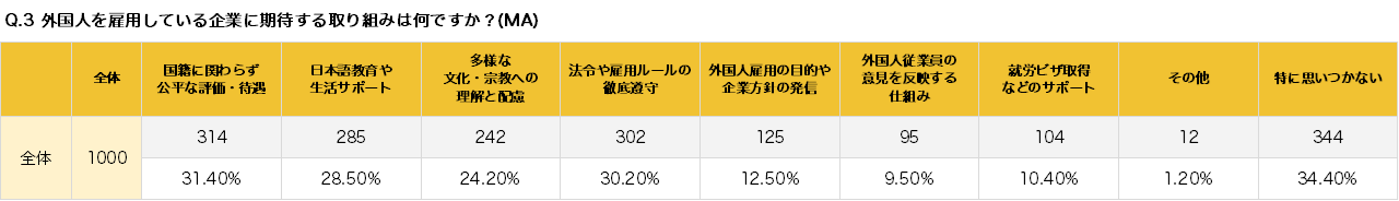 Q3.外国人を雇用している企業に期待する取り組みは何ですか?(MA)