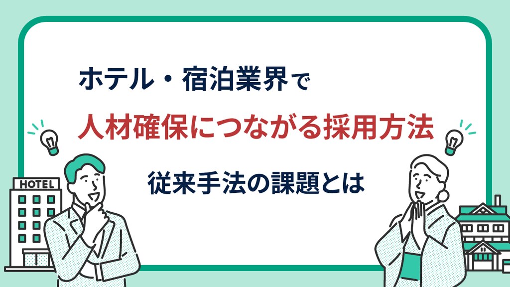 記事を見る少子高齢化によって労働者の母数が減る中、多くのホテル・宿泊施設が人手不足に陥っています。 そこで今回はホテル・宿泊業向けに、さまざまな採用手法のメリット・デメリットや、今の時代におすすめの人材獲得方法について紹介します。 人手不足を解消したいホテル・宿泊施設の方は、ぜひ参考にしてみてください。