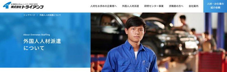 株式会社トライアンフは、在留資格申請から受け入れ後のフォローまで対応している外国人人材紹介会社です。