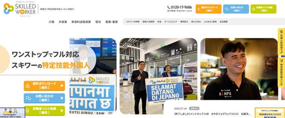 株式会社RDグローバルリンクは、特定技能外国人紹介サービス「スキルド・ワーカー〈スキワー〉」を運営しています。